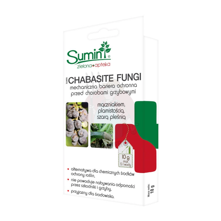 Chabasite FUNGI jest to sypki, przeznaczony do rozcieńczania w wodzie, nalistny produkt pochodzenia naturalnego. Wytworzony z minerału zaliczanego do grupy zeolitów, o szczególnym, krystalicznym i sześciennym kształcie. Opryskane środkiem powierzchnie są bardzo szorstkie i ostre, niesprzyjające bytowaniu oraz żerowaniu szkodliwych owadów oraz zasiedlaniu roślin przez chorobotwórcze grzyby.