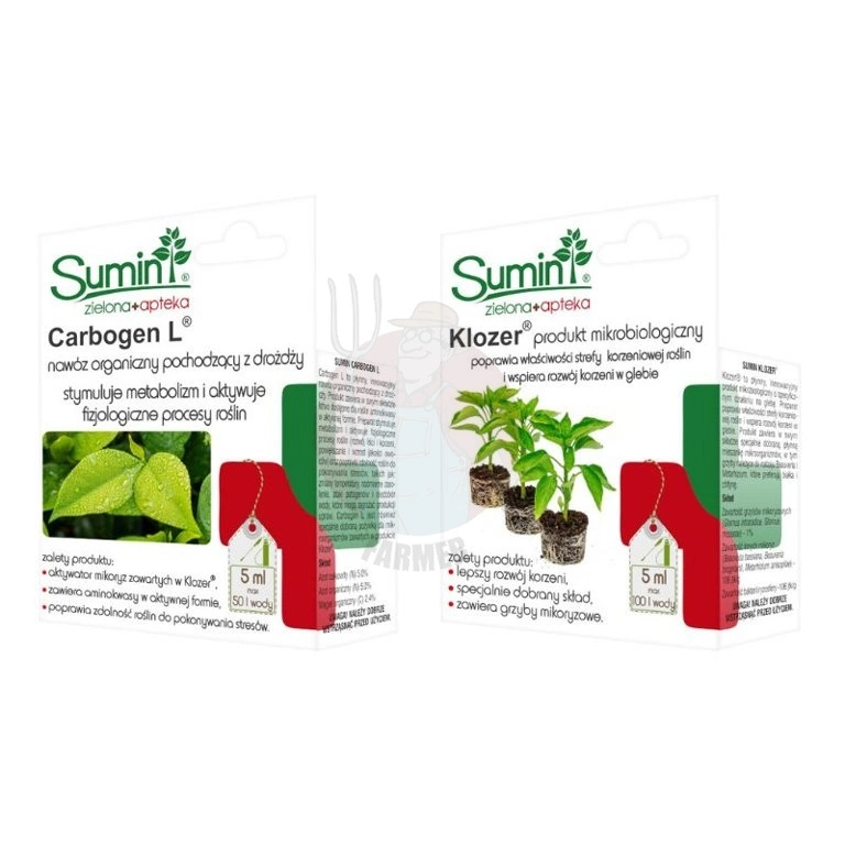 - Sumin Klozer & Carbogen L – mikrobiologiczny dwupak na szkodniki w uprawach.