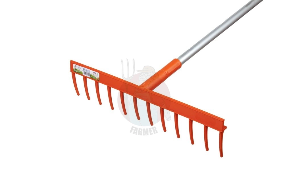 Nowoczesne grabki plastikowe KLIK 12 zębne, to produkt uniwersalny. Może być użyty do grabienia ale też po odwróceniu do rozrównywania, plantowania ziemi i piasku. Produkowane z najwyższej jakości nowego plastiku, wzmocnionego włóknem szklanym. Przeznaczone do ciężkich prac rolniczych, ogrodowych i budowlanych. Mocniejsze od grabek 16 zębnych KLIK. Można montować z nowoczesnym trzonkiem aluminiowym KLIK lub na wkręt z trzonkiem drewnianym fi 27 mm.