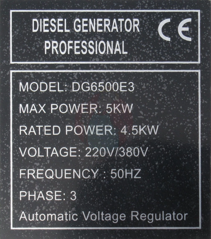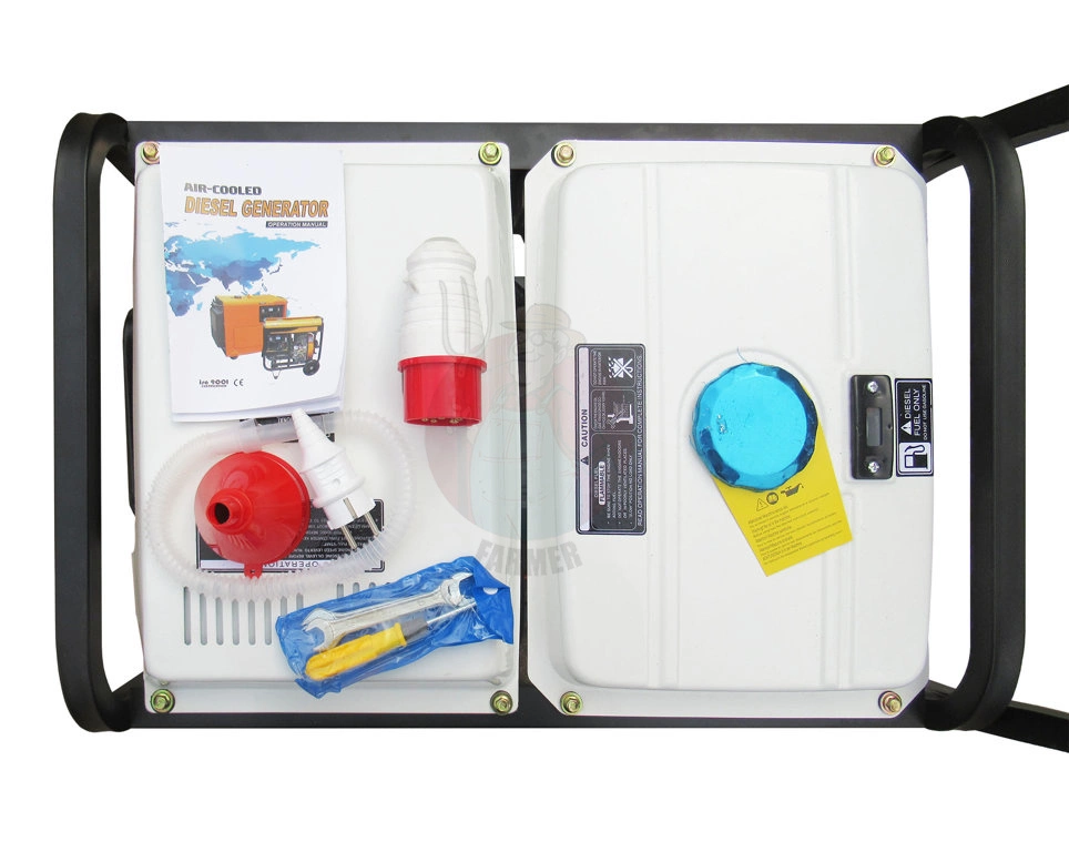 - Chłodzony powietrzem silnik wysokoprężny HD186FE i alternator wykonany w 100% z drutu miedzianego, zapewnia znamionową moc wyjściową 4,5 kW i maksymalną moc wyjściową 5 kW!