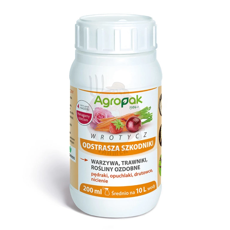 Wrotycz to naturalny preparat mikrobiologiczny na bazie ekstraktu z procesu fermentacji wrotyczu z bakteriami lactobacillus i bacillus, przeznaczony do odstraszania obecnych w glebie szkodników, takich jak pędraki, nicienie, opuchlaki i drutowce. Charakterystyczny zapach oraz substancje aktywne w preparacie powodują, że zwalczane szkodniki wychodzą na powierzchnię i wzbudzają zainteresowanie ptactwa. Preparat należy stosować w formie podlewania na wilgotną glebę w dni pochmurne lub wieczorem – zaleca się wykonanie trzech zabiegów w odstępach 7 – 10 dni. Produkt bezpieczny dla ludzi, zwierząt i środowiska.