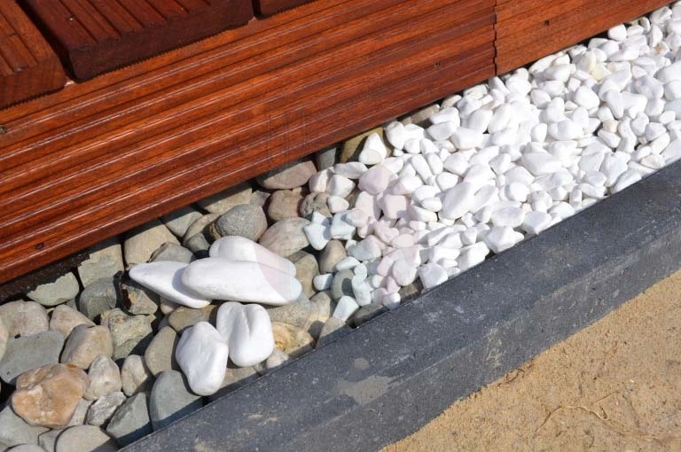 - w połączeniu z innymi otoczakami, grysami czy zrębkami