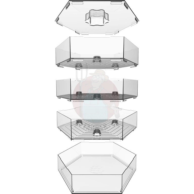 Kiełkownica wielopoziomowa z pojemnikiem na wodę, sześciokątna, przezroczysta, 3 poziomy.