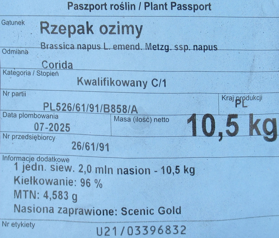 - Cena za jednostkę siewną 2 mln nasion.