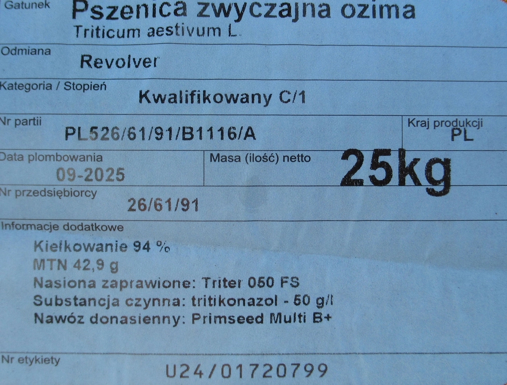 Pszenica ozima Revolver nasiona kwalifikat C1