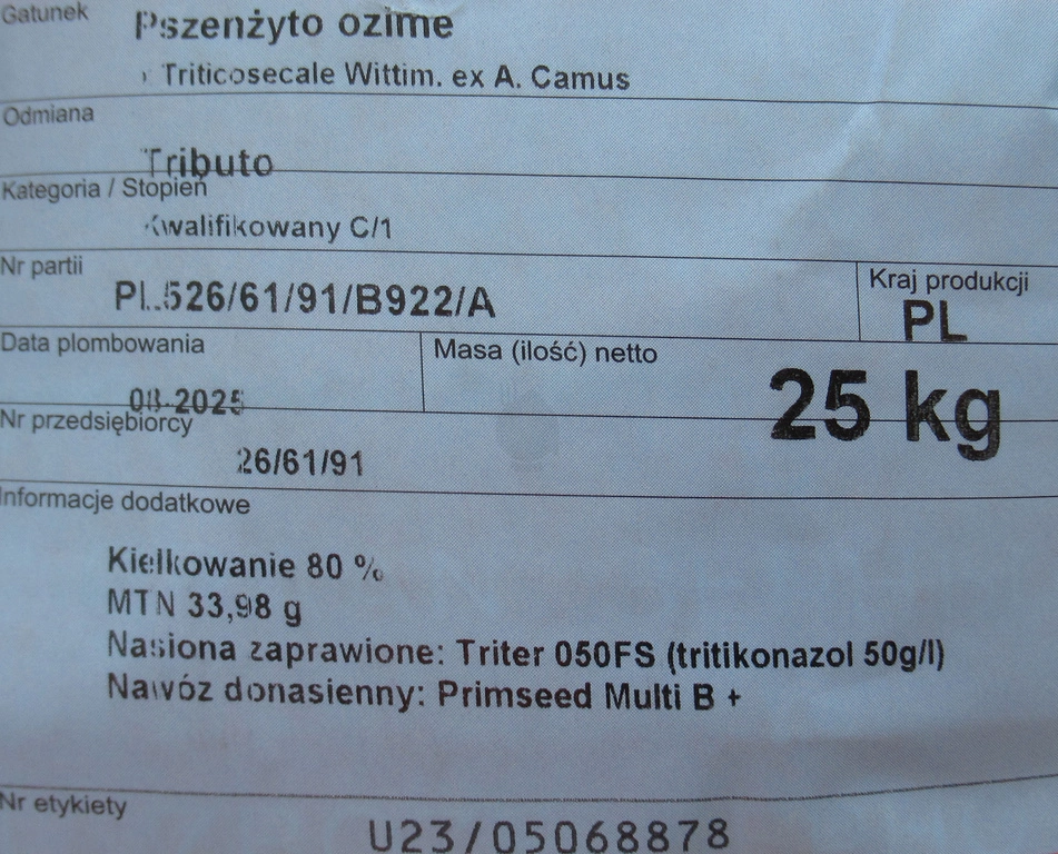 Pszenżyto ozime Tributo nasiona kwalifikat C1