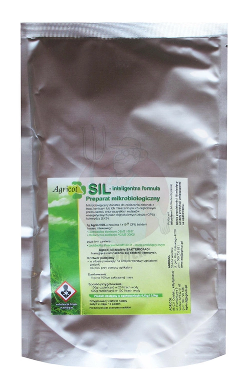Mikrobiologiczny dodatek do zakiszania zielonek z traw, koniczyn lub ich mieszanin po ich częściowym przesuszeniu oraz wszystkich rodzajów energetycznych pasz objętościowych zboża i kukurydzy. Agricol sil zawiera bakteriofagi hamujące namnażanie się bakterii tlenowych.