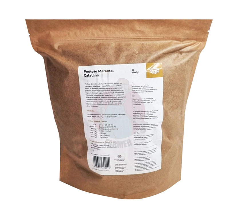 - Podłoże składa się z około 55% ziemi i torfów, reszta to składniki odpowiadające za rozluźnienie podłoża, utrzymanie odpowiedniej wilgotności oraz odpowiedni dopływ powietrza do bryły korzeniowej.