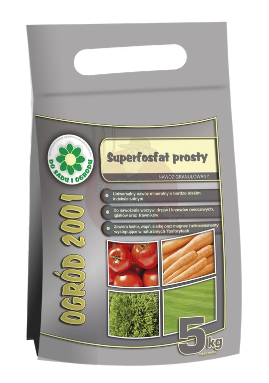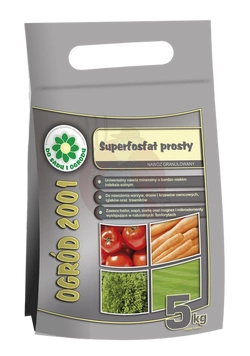 • Superfosfat Prosty to jednoskładnikowy uniwersalny nawóz fosforowy do nawożenia wszystkich roślin uprawnych: warzyw, owoców, trawników i roślin ozdobnych. Jest bezpieczny do stosowania dla każdego rodzaju gleby, bez względu na jej skład chemiczny.
