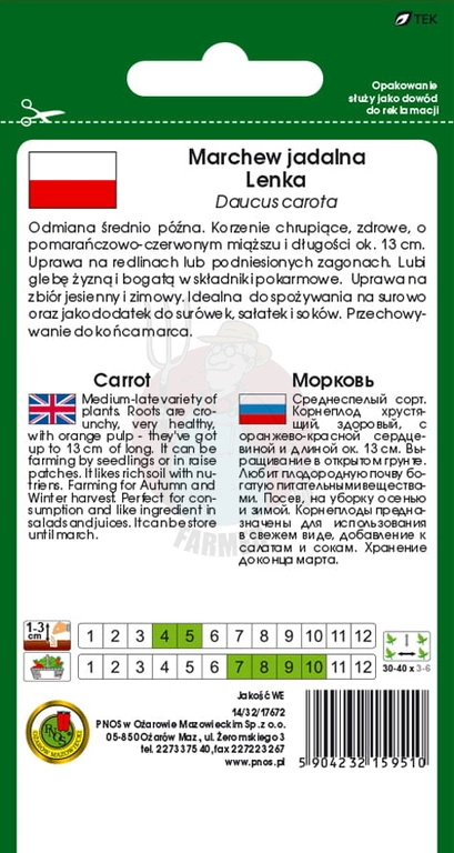 - Marchew 'LENKA' odmiana średnio późna. Odmiana na zbiór jesienny i zimowy, bardzo dobrze się przechowuje, odmiana plenna. Typ nantejski.