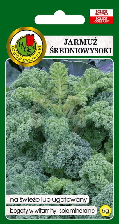 - Odmiana średnio wysoka, osiąga około 70cm wysokości. Jarmuż Halbhoher Gruner Krauser ma liście zielone, w odcieniu młodej trawy. Liście są wyjątkowo mocno karbowane, a ogonki długie.