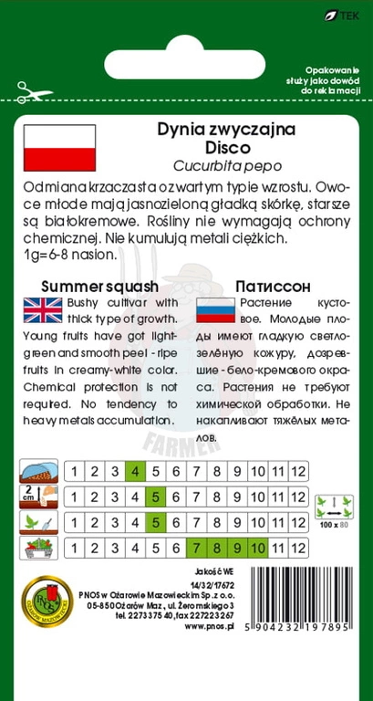 - Patison Disco to wczesna odmiana dyni zwyczajnej o krzaczastym, zwartym pokroju. Charakterystyczne owoce przybierają formę dzwonu z silnie ząbkowanym brzegiem. Kolor skórki w miarę dojrzewania owocu zmienia się z jasnozielonego na białokremowy.