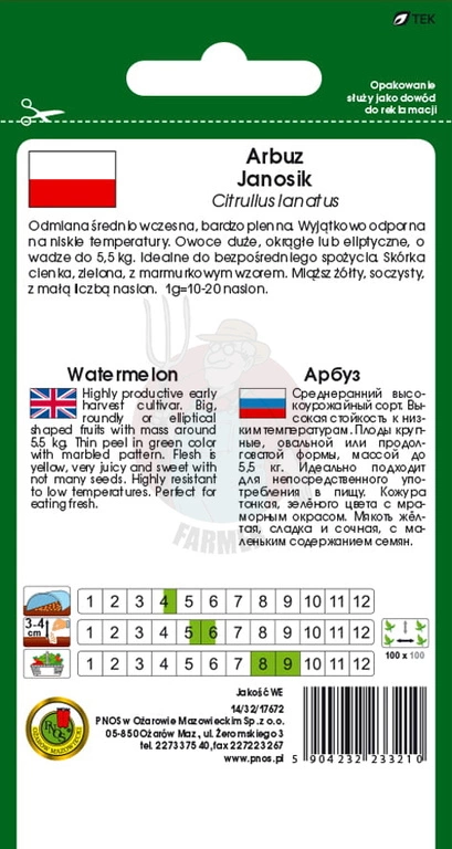 - Odmiana średnio wczesna, tolerancyjna na chłody. Owoce kształtu eliptyczno-okrągłego, o wadze 3,5-5,5kg i cienkiej, ciemnozielonej skórce z ciemniejszymi, wąskimi smugami i słabo zaznaczonym marmurkiem.