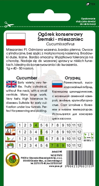 Odmiana wczesna, bardzo plenna, o dużej tolerancji wobec chorób. Polecana do uprawy na wczesny zbiór w niskich, nieogrzewanych tunelach. Owoce cylindryczne, bez szyjki, o nasadzie lekko zaokrąglonej, z małą komorą nasienną. Brodawki duże, liczne. Polecany do konserwowania i do kwaszenia. Odmiana bardzo popularna na rynku. Przeznaczona do konserwowania i kwaszenia.