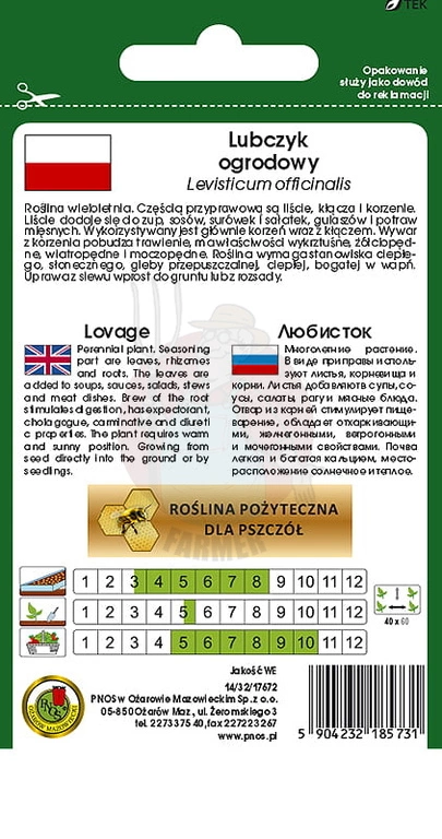 Lubczyk ogrodowy to silnie rosnąca roślina wieloletnia, wytwarzająca podziemne kłącze, osiągająca nawet do 2m wysokości. Rozrasta się w wysokie, kępiaste rozety utworzone z licznych, wzniesionych, długoogonkowych, pojedynczo lub podwójnie złożonych liści odziomkowych. Lubczyk ogrodowy najlepiej rośnie na ciepłych, słonecznych stanowiskach, choć poradzi sobie także w miejscach pół cienistych oraz w cieniu. Najlepsze dla lubczyku są gleby lżejsze, przepuszczalne, dobrze uprawione i spulchnione, o dużej zawartości składników pokarmowych, próchnicy i wapnia. Lubczyk nie urośnie na glebach suchych, zlewnych, gliniastych, kwaśnych i jałowych.