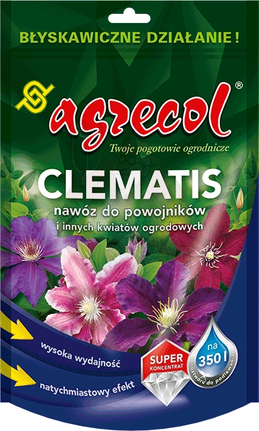 - CLEMATIS to łatwo rozpuszczalny w wodzie, doskonale przyswajalny oraz szybko działający nawóz krystaliczny. Przeznaczony do nawożenia powojników (clematisów) oraz innych kwiatów ogrodowych.