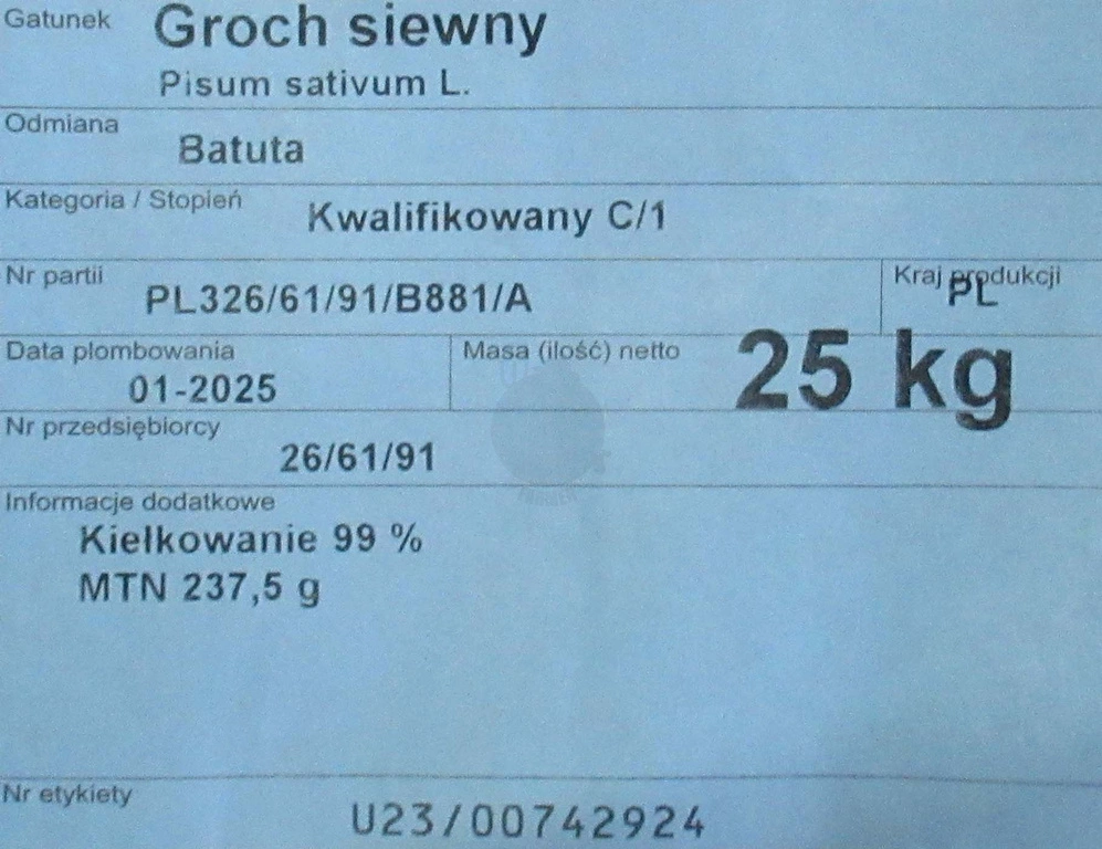 Groch siewny Batuta kwalifikat C1