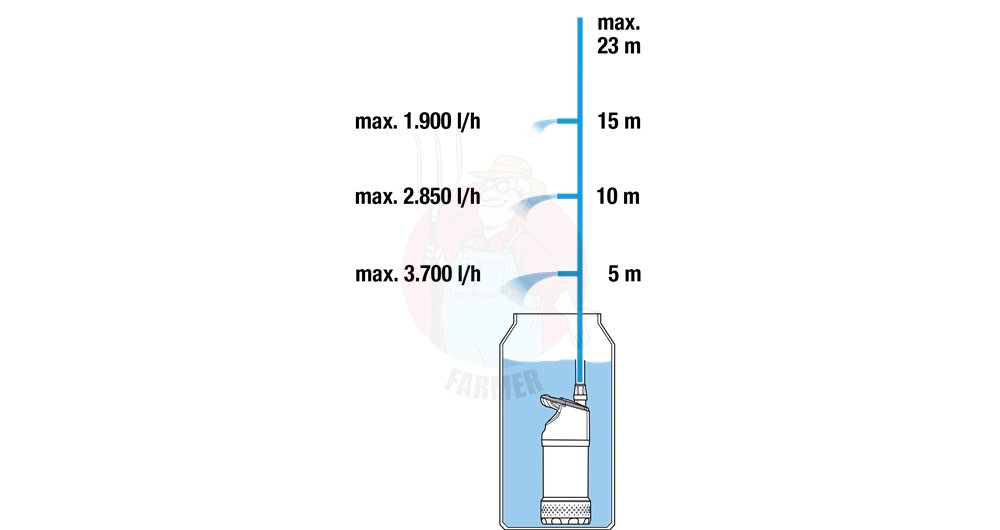 Do licznych praktycznych funkcji dochodzi jeszcze łatwość transportu. Aby zapobiec plątaniu się kabla, należy go zawiesić ponad wytrzymałą rurą, całość służy następnie jako wygodny, nieślizgający się uchwyt do transportu pompy.