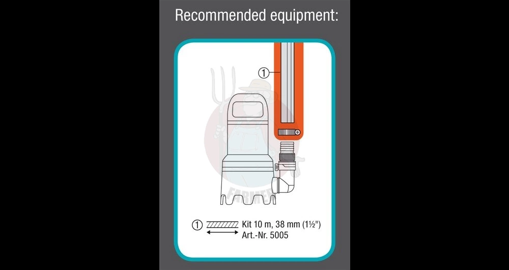 Pompa zanurzeniowa do brudnej wody 20000 Aquasensor umożliwia przyłączanie węży o średnicy 32 mm (1¼”), 38 mm (1 ½") lub 50 mm (2”) oraz złącza z gwintem połączeniowym G1 ½”, dającego jeszcze więcej możliwości.
