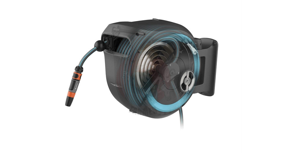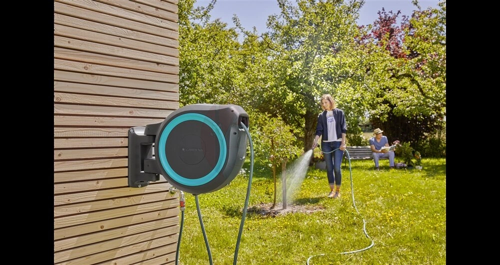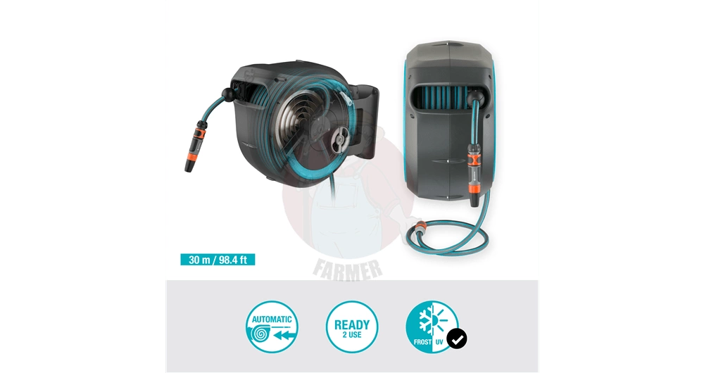 Dzięki możliwości obrotu w zakresie 180° oraz wężowi o długości 30 m, użytkownik podczas podlewania zyskuje maksymalną swobodę ruchu. Aby zacząć podlewać, wystarczy wyciągnąć odpowiednią ilość węża. Jak tylko przestaniemy ciągnąć za wąż, blokada ustawiona na bardzo krótkie odstępy zatrzyma jego wciąganie, zablokowując go. Po zakończeniu pracy, nie musimy już ręcznie nawijać węża, schylając się i mocząc sobie dłonie.