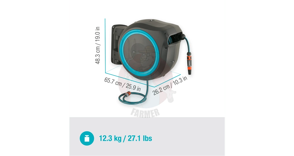 W komplecie do bębna naściennego, użytkownik otrzymuje wszystkie niezbędne elementy: mocowanie naścienne, wąż przyłączeniowy, wszystkie konieczne elementy Original GARDENA System, a także zraszacz z dwiema opcjami strumienia wody. Ponadto, bęben zabezpieczony jest przed kradzieżą. GARDENA daje pięcioletnią gwarancję na ten wysokiej jakości bęben na wąż ogrodowy.