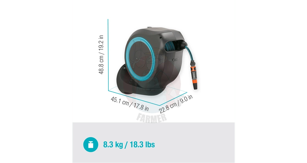 Bęben naścienny wykonany jest oczywiście z wysokiej jakości materiałów, zapewniających mu ochronę przed promieniowaniem UV i mrozem, co umożliwia użytkowanie go przez cały rok. Ponadto, dzięki zabezpieczeniu przed kradzieżą, bęben zdemontować ze ściany może tylko jego właściciel. W komplecie do bębna naściennego, użytkownik otrzymuje mocowanie naścienne, giętki wąż przyłączeniowy, wszystkie niezbędne elementy Original GARDENA System i części montażowe, a także zraszacz z dwiema opcjami strumienia wody. GARDENA daje pięcioletnią gwarancję na ten wysokiej jakości produkt.