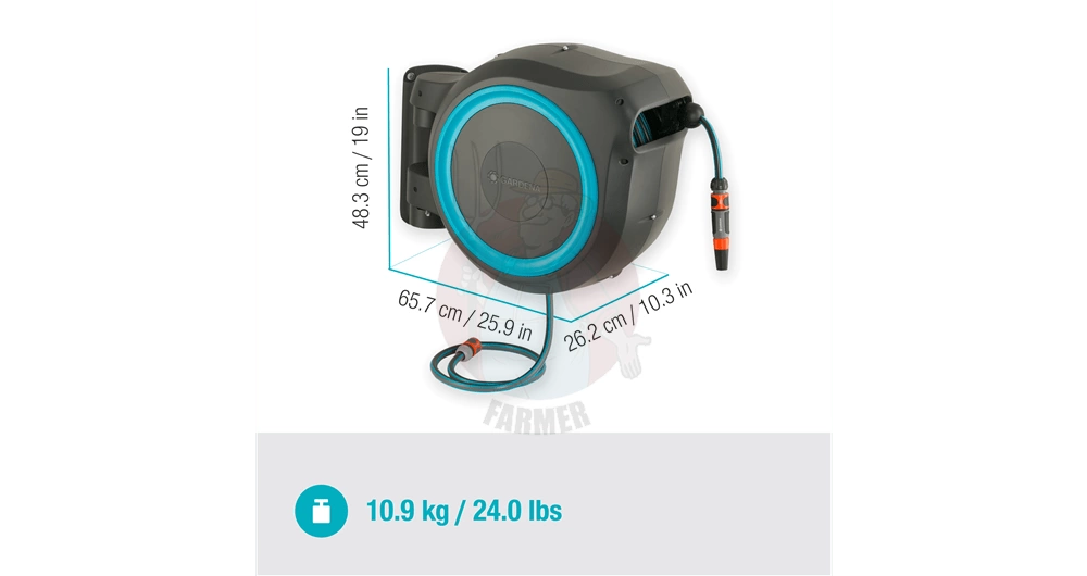Zwiajk do węża ogrodowego posiada ochronę przed kradzieżą. W komplecie do bębna, użytkownik otrzymuje wszystkie niezbędne elementy mocujące: mocowanie naścienne, wąż przyłączeniowy, wszystkie wymagane elementy Original GARDENA System i części montażowe, a także zraszacz z dwiema opcjami strumienia wody. GARDENA daje pięcioletnią gwarancję na ten wysokiej jakości bęben na wąż ogrodowy.
