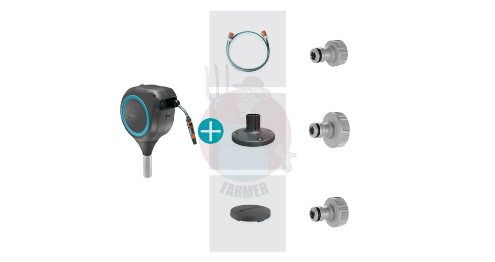 - W zestawie: 1 x GARDENA bęben na wąż ogrodowy RollUp M, w tym 1 x 20 m wysokiej jakości wąż GARDENA 11 mm, 1 x elastyczny wąż przyłączeniowy, oryginalne części GARDENA System (przyłącze kranowe, przyłącze węża, ogranicznik dopływu wody), 1 x zraszacz prosty, 1 x uniwersalne mocowanie ze śrubami i kołkami rozporowymi