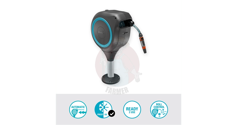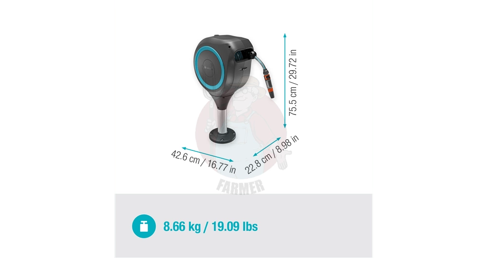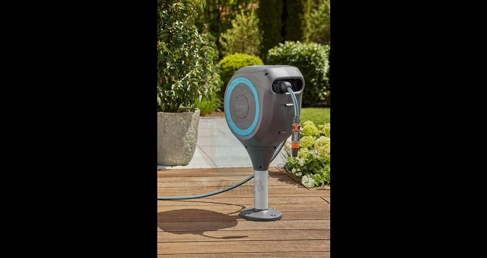- Kompaktowy: Zwijacz ze zintegrowanym 20-m wężem ogrodowym idealnie nadaje się na tarasy w ogrodach średniej wielkości