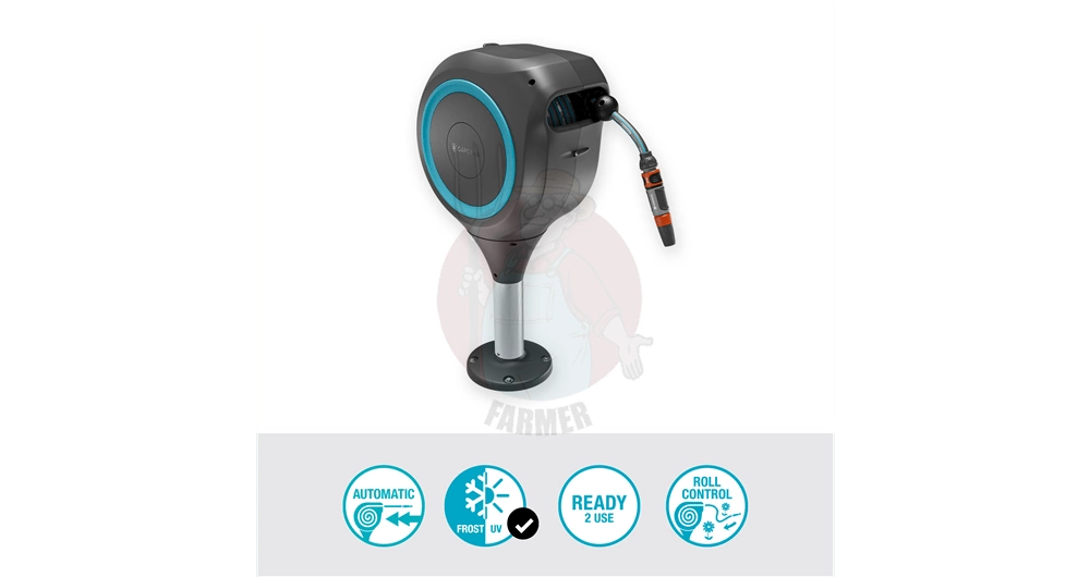 Bęben wyposażony jest w wysokiej jakości wąż o długości 15 m oraz wąż połączeniowy z elementami Original GARDENA System. W zestawie znajduje się uniwersalny uchwyt montażowy, a także śruby i kołki, dzięki czemu wytwarzany w Europie produkt jest gotowy do natychmiastowego użycia. GARDENA oferuje pięcioletnią gwarancję na produkt po rejestracji na stronie: gardena.com/pl/rejestracja w ciągu 3 miesięcy od daty zakupu. Warunki gwarancji dostępne na stronie gardena.com/pl/gwarancja.