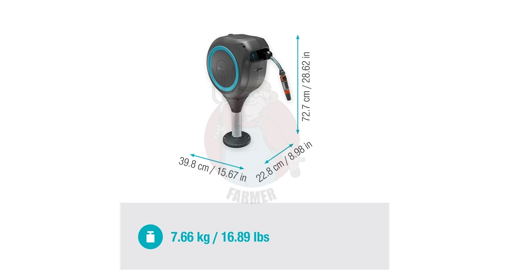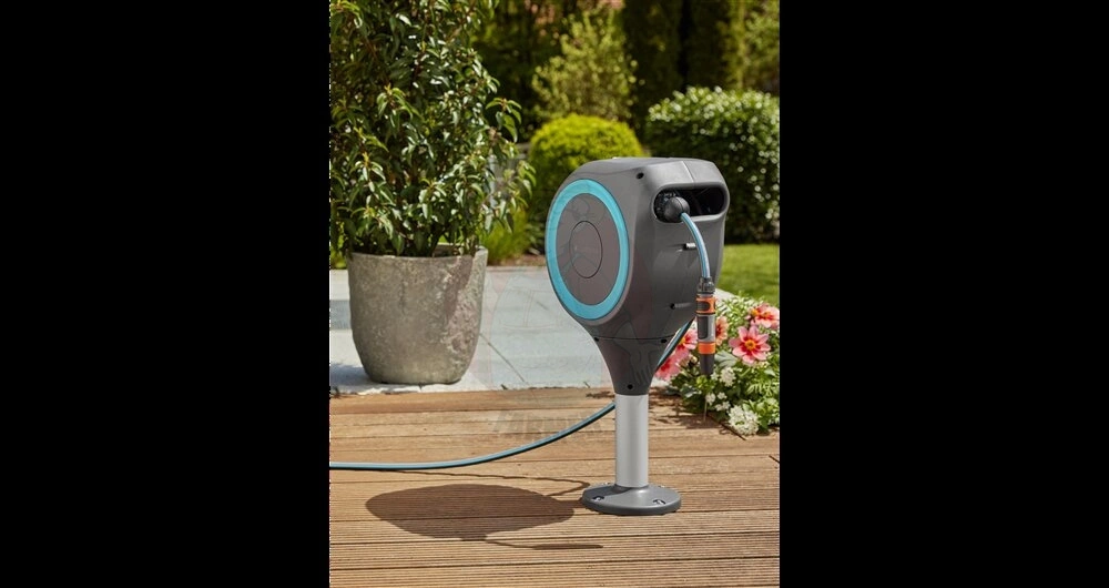 - Kompaktowy: Zwijacz ze zintegrowanym 15-metrowym wężem ogrodowym idealnie nadaje się do tarasów w mniejszych ogrodach