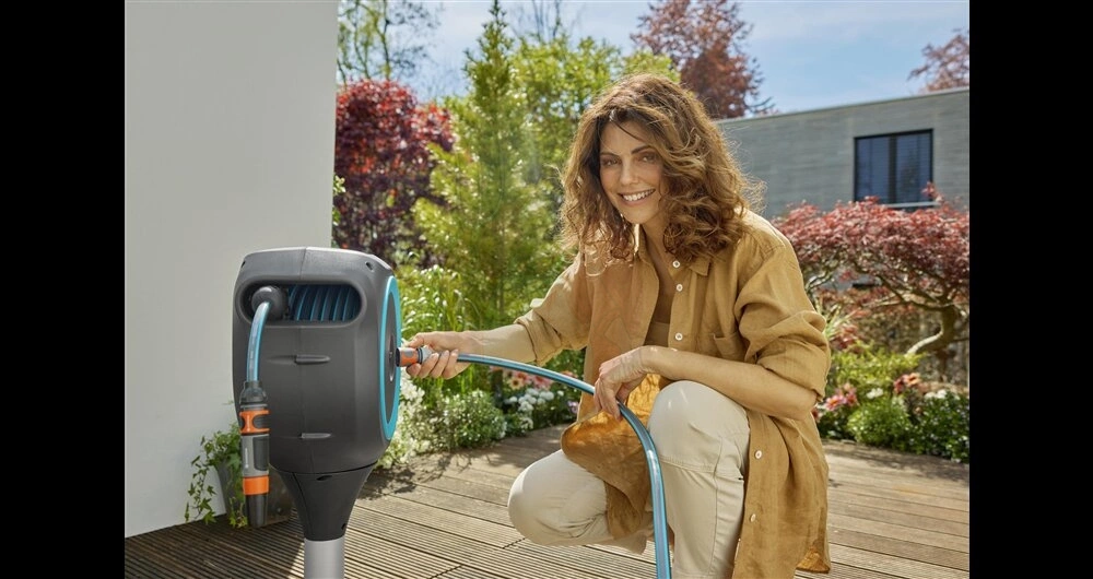Bęben na wąż można umieścić w dowolnym miejscu na drewnianym lub betonowym tarasie. Uniwersalne mocowanie tworzy mocną i stabilną podstawę. Bęben można swobodnie obracać o 360° bez załamywania węża. Dzięki wężowi o długości 15 metrów zwijacz idealnie nadaje się do podlewania roślin w mniejszych ogrodach.