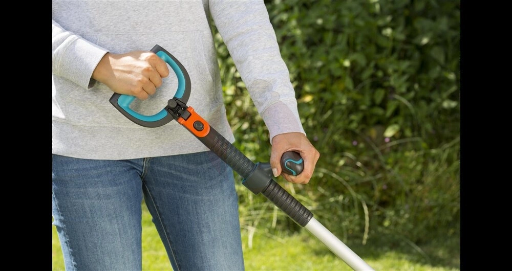 Wygoda i bezpieczeństwo – uchwyt ErgoTec Nożyce Slim Cut posiadają wygodny uchwyt z regulacją długości, co pozwala na dopasowanie narzędzia do wzrostu użytkownika i pracę bez konieczności |