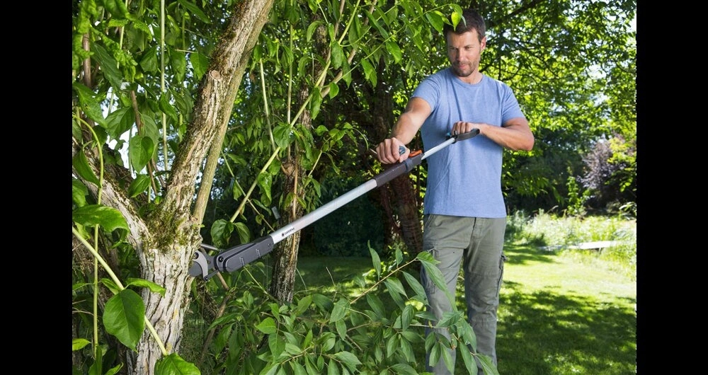 Nożyce do gałęzi, które dzięki 2-stopniowej przekładni sprawdzą się w gęstych krzewach lub koronach drzew
