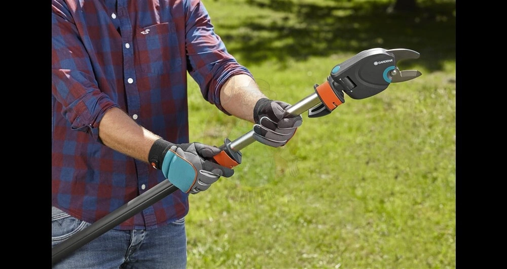 12-krotne przełożenie przekładni zapewnia odczuwalnie większą siłę cięcia. Innowacyjny regulowany hak do usuwania gałęzi zapewnia dodatkowy komfort podczas pielęgnacji drzew. Wszelkie mechanizmy są zabudowane, co skutecznie zapobiega przytrzaśnięciu gałęzi podczas cięcia. Niezwykle lekka i smukła głowica tnąca umożliwia wygodne i precyzyjne cięcie nawet w pobliżu pnia.