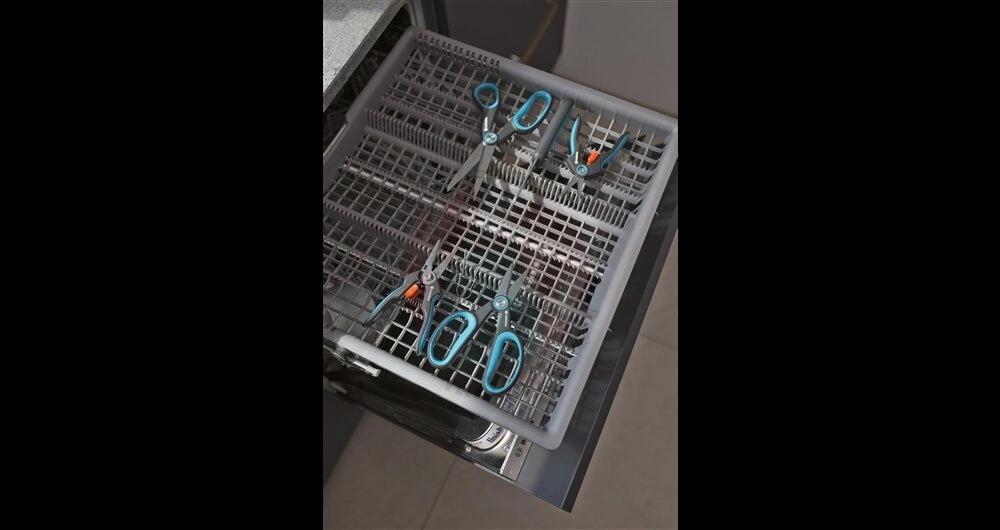 Możliwość mycia w zmywarce Wysokiej jakości materiały sprawiają, że nożyce można w razie potrzeby umyć |