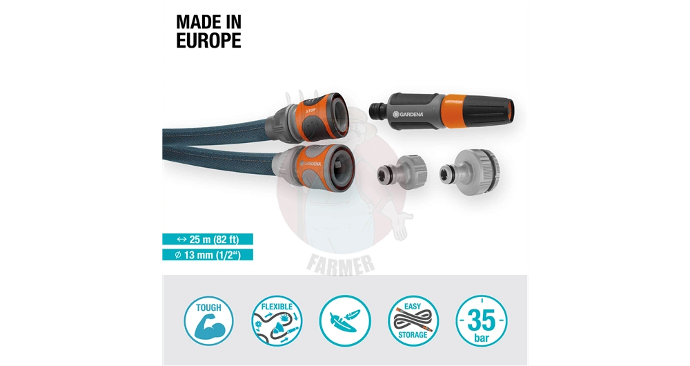 | Zestaw | Zestaw z elementami Original GARDENA System, dyszą zraszającą i przyłączami kranowymi 18225/18220 |