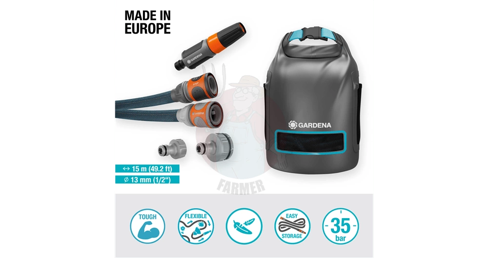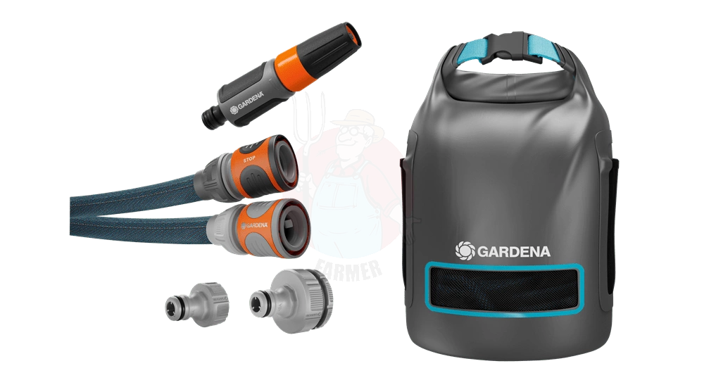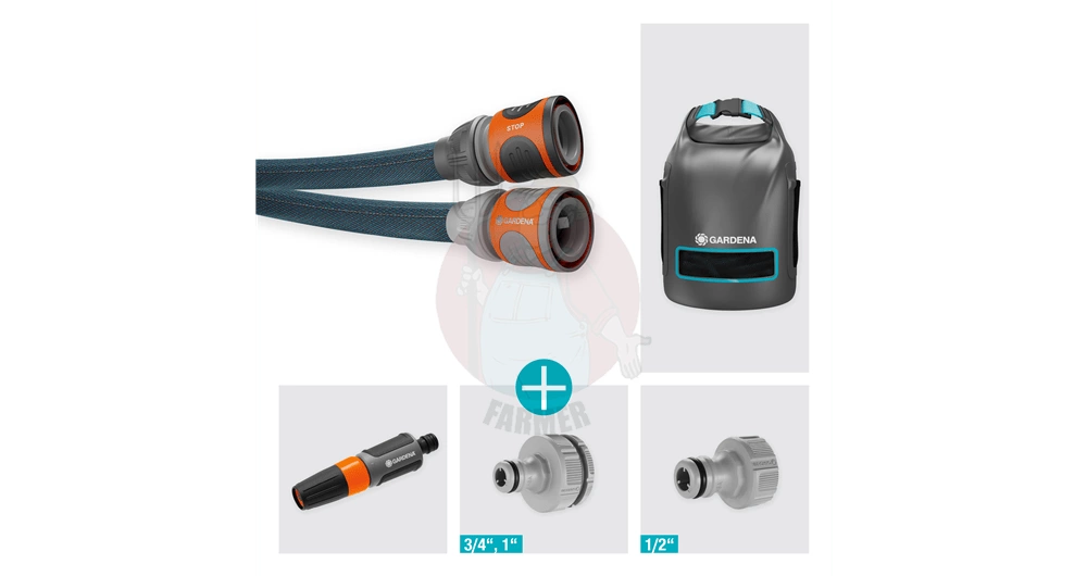 | Zestaw | Zestaw z elementami Original GARDENA System, dyszą zraszającą, przyłączami kranowymi 18225/18220 i workiem do przechowywania Liano™ |