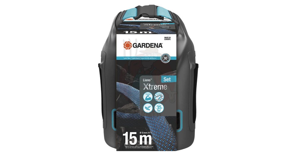 Wąż wytrzymuje ciśnienie rozrywające do 35 barów. Jest odporny na działanie promieniowania UV oraz na mróz, dzięki czemu można go pozostawiać na zewnątrz przez cały rok. Ponadto Liano™ Xtreme jest wolny od substancji szkodliwych, takich jak ftalany (<0,1%) oraz kadm, ołów i bar (<0,1%). Wysokiej jakości wąż tekstylny Liano™ Xtreme to produkt wytwarzany w Europie, objęty przez GARDENA 30-letnią gwarancją po rejestracji na www.gardena.com/pl/rejestracja w czasie 3 miesięcy od zakupu. Stworzone, by sprostać największym wyzwaniom, przeznaczone do codziennego użytku. Węże tekstylne Liano™.