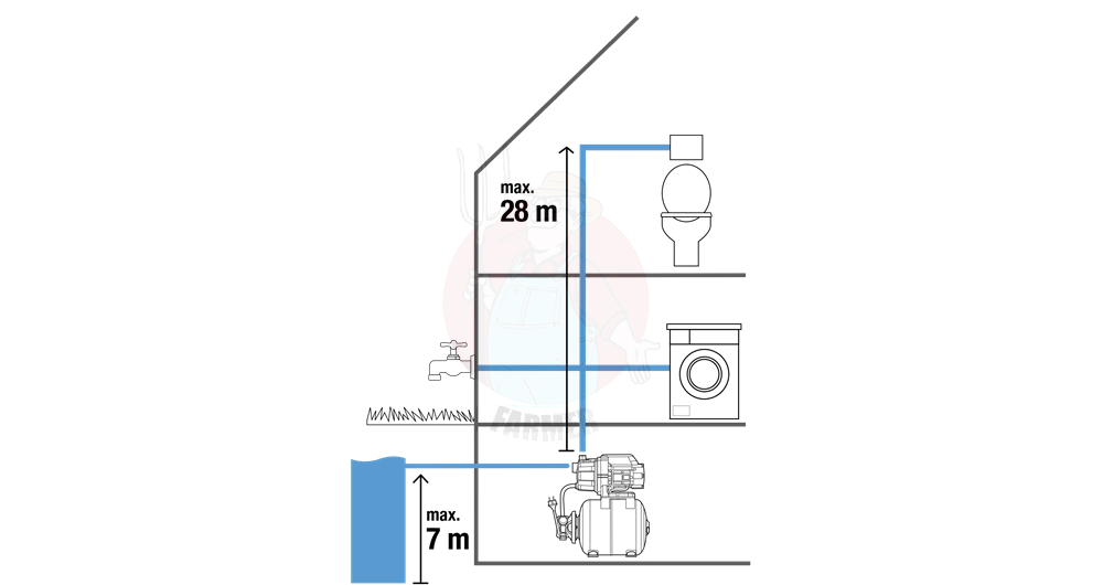 Woda zgromadzona w studniach, cysternach czy beczkach z deszczówką jest przetłaczana przez mocną pompę do miejsca, w którym jest potrzebna w domu i ogrodzie. Zestaw hydroforowy 3700/4 zapewnia imponującą wydajność 4,1 bara przy mocy 800 W i może pompować do 3700 litrów wody na godzinę z głębokości do 7 metrów. Posiada 19-litrowy zbiornik na wodę z niewymagającą konserwacji membraną EPDM.