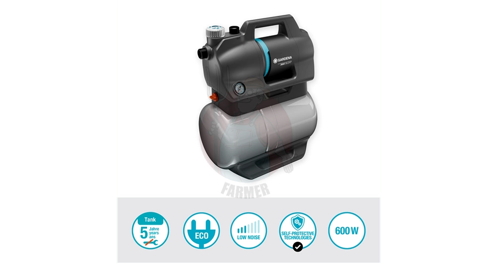 Przedstawiamy pompy o bardzo niskim poziomie hałasu i większej mocy. GARDENA zestaw hydroforowy 3800 Silent to właściwy wybór do wydajnego użytkowania wody i zrównoważonego zasilania wodą domu i ogrodu. Pozwala wykorzystywać wodę użytkową ze zbiorników, takich jak beczki, studnie i cysterny, do użytku w toalecie czy pralce. Zestaw hydroforowy włącza się automatycznie, gdy potrzebna jest woda, a następnie się wyłącza. Jako że może pobierać wodę ze swojego dużego zbiornika, pracuje bardzo cicho i oszczędnie.