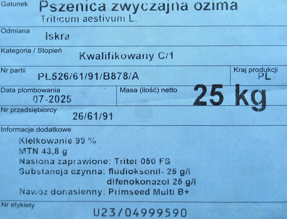 Pszenica ozima Iskra nasiona kwalifikat C1