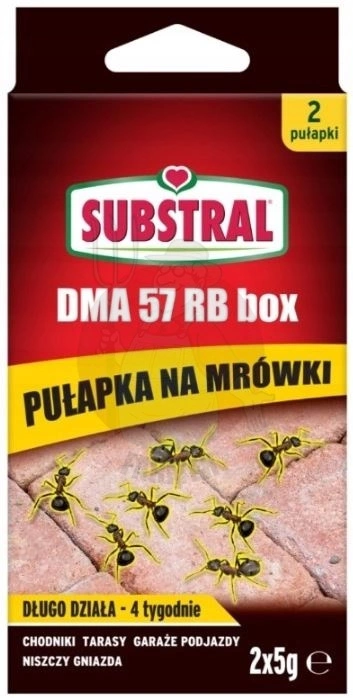 - Pułapka na mrówki, którą można stosować zarówno wewnątrz, jak i na zewnątrz budynków. Produkt jest gotowy do użycia i działa poprzez wabienie mrówek do żelu, który następnie przenoszą do gniazda, co prowadzi do ich eliminacji.