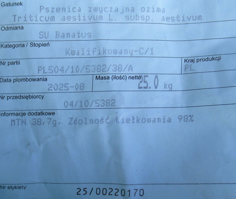 Pszenica ozima SU Banatus nasiona kwalifikat C1