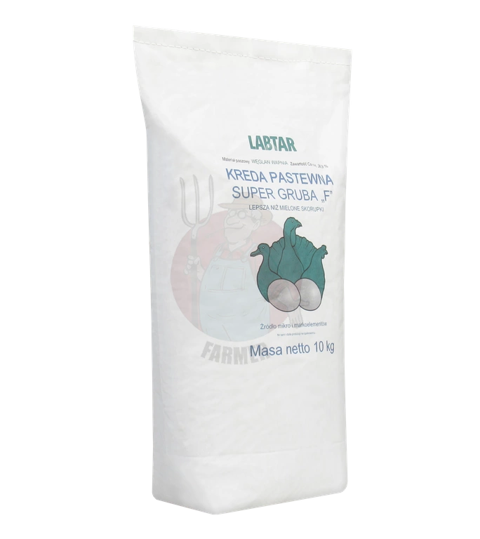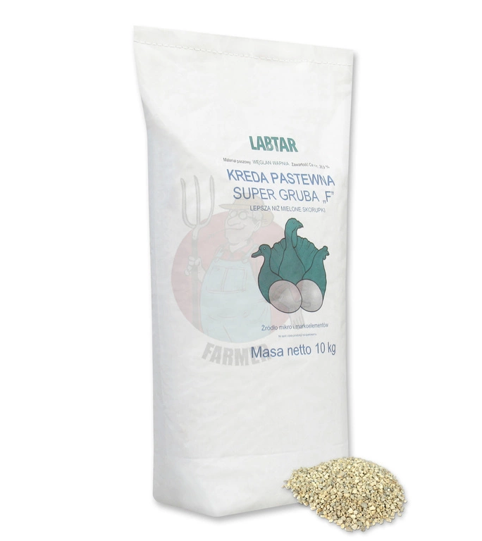 Kreda pastewna supergruba F charakteryzuje się granulacją od 0,4 do 3,0 mm, co sprawia, że jest idealnym produktem do stosowania w fermach drobiu.