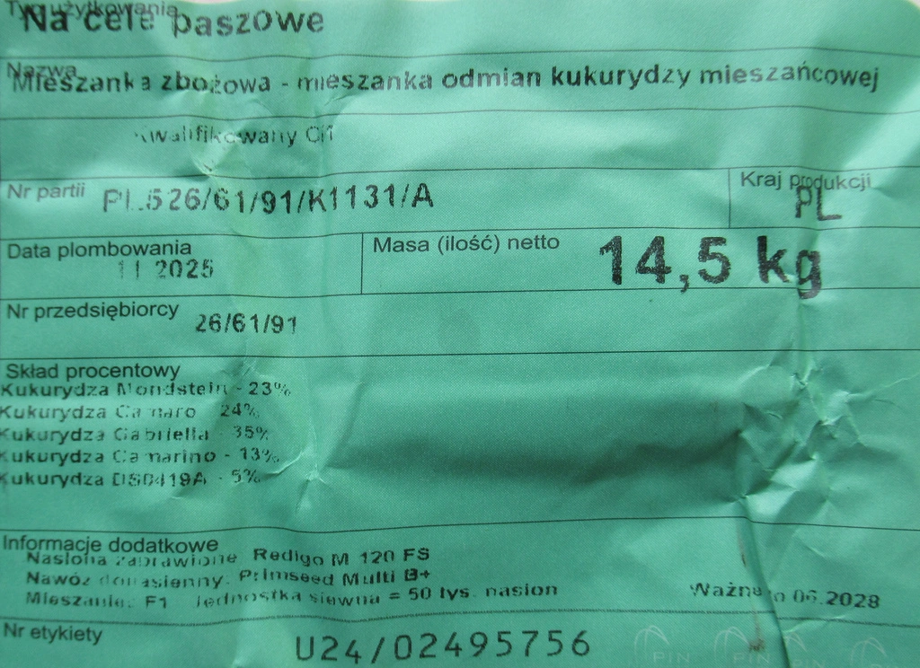 Kukurydza siewna mieszańcowa mieszanka odmian kwalifikat C1