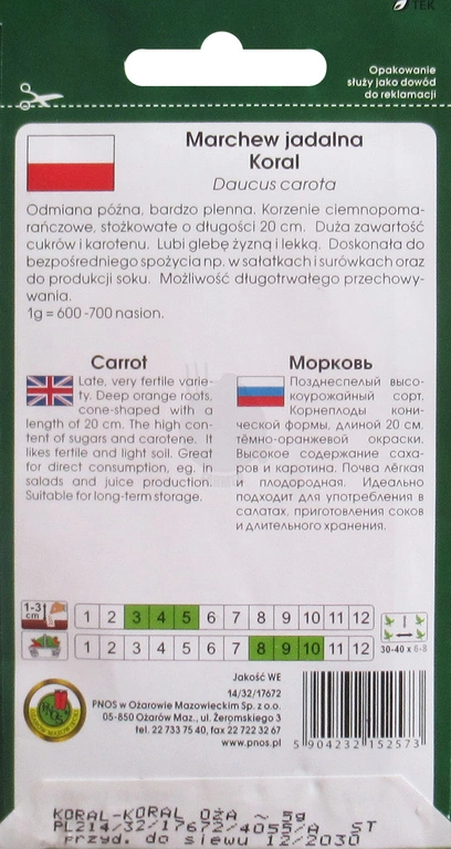 Marchew jadalna Koral PNOS