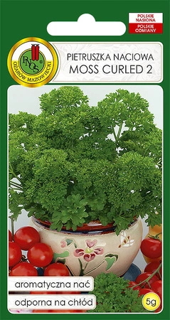 Pietruszka Moss Curled to odmiana o silnie kędzierzawych, ciemnozielonych i aromatycznych liściach. Charakteryzuje się wysokim plonem i odpornością na chłody. Zimuje w gruncie, wcześnie wznawiając wzrost. Przeznaczona do uprawy w polu, najlepiej rośnie w żyznej, przepuszczalnej glebie. Idealna do bezpośredniego spożycia.