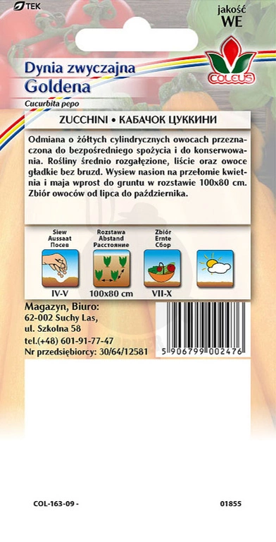 Dynia zwyczajna cukinia Goldena 2 g Coleus