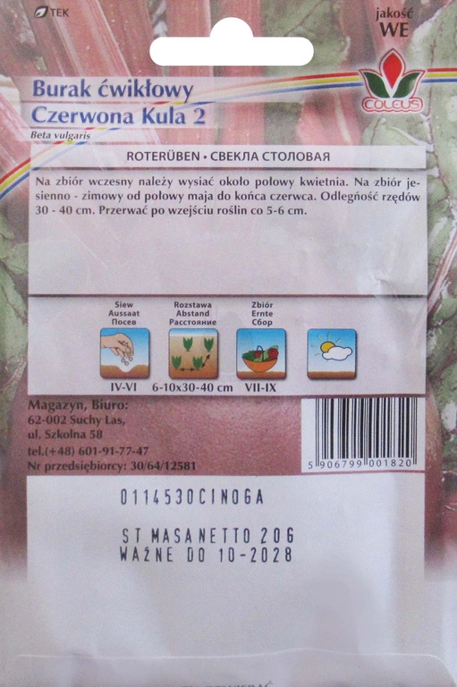 Burak ćwikłowy Czerwona Kula 2 nasiona Coleus